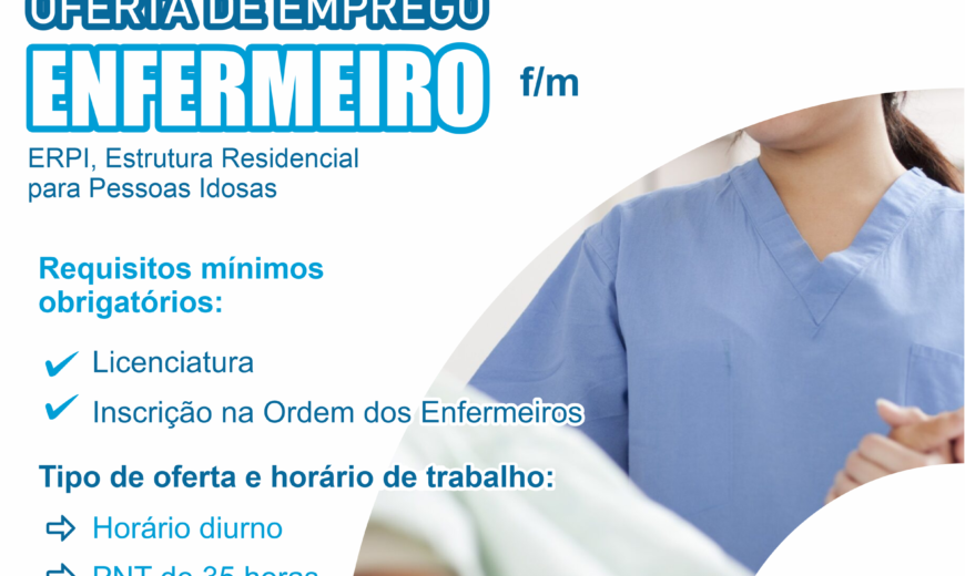 Estamos a contratar Enfermeiro(a) para cuidados de saúde aos utentes de ERPI, Estruturas Residenciais para Pessoas Idosas. Para mais informações, clique p.f. aqui.